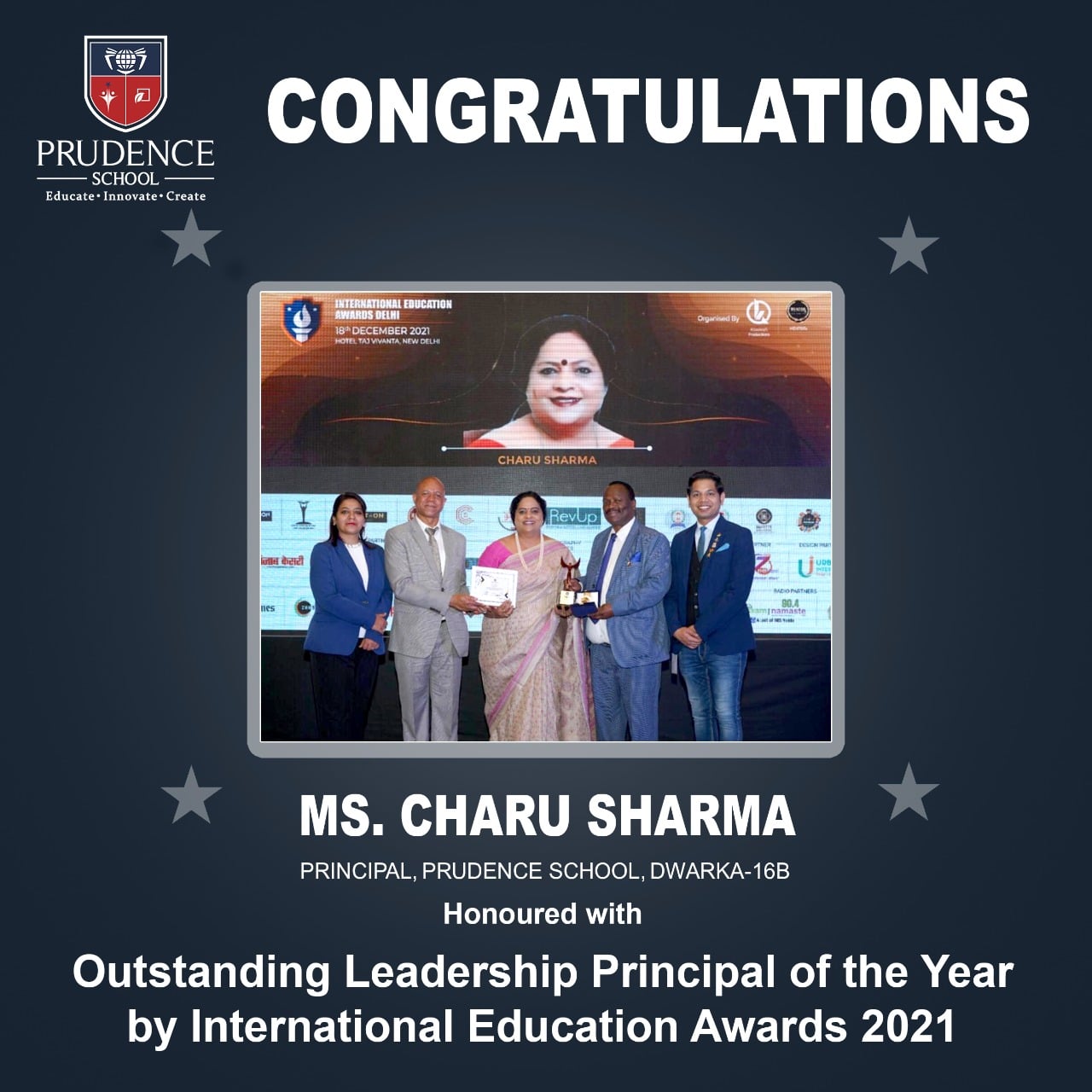 Congratulations!!Ms. Charu Sharma, Principal of Prudence School Dwarka 16B honoured with Outst......