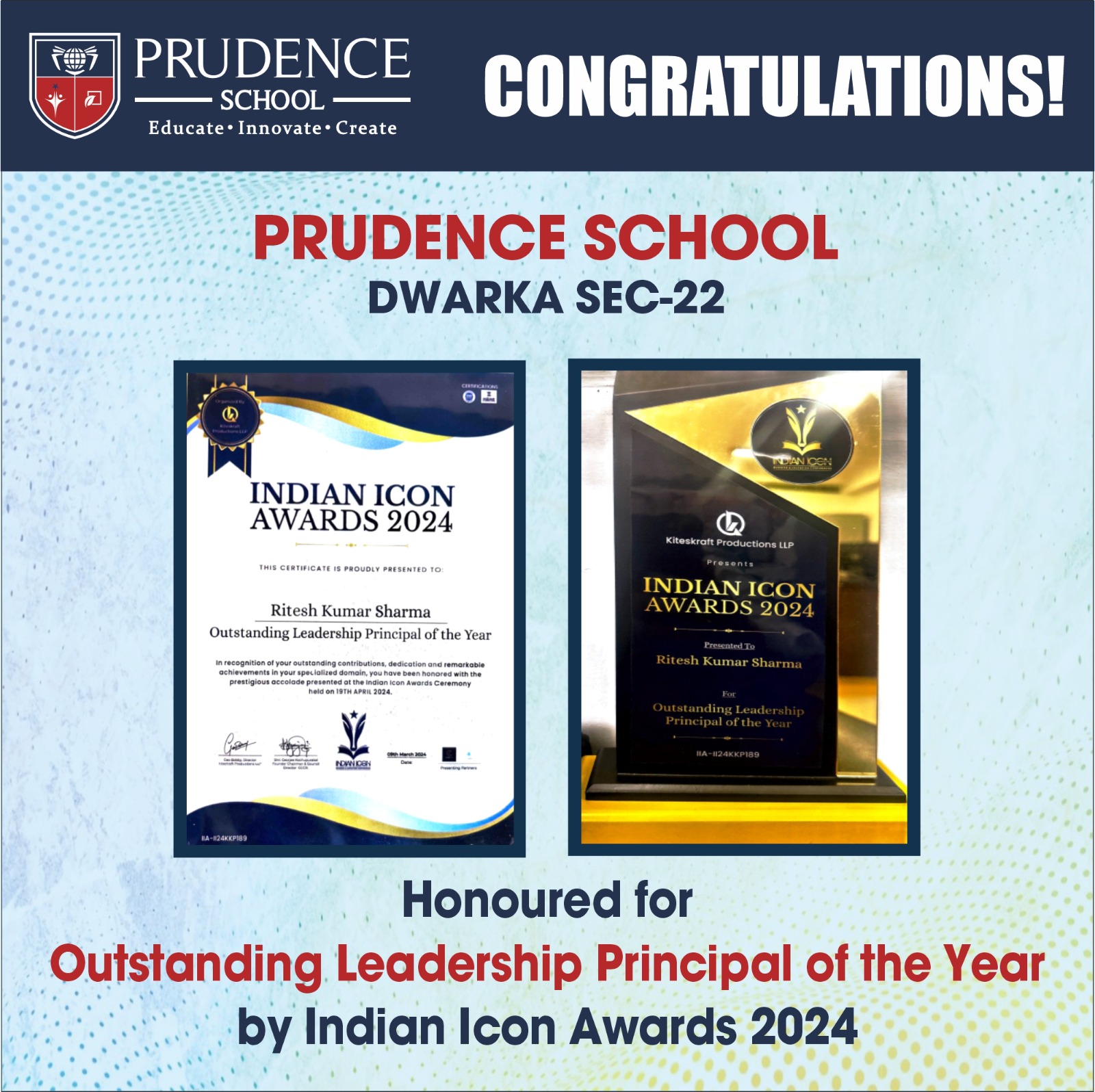 Warmest congratulations to Mr. Ritesh Sharma, the esteemed Principal of Prudence School Dwarka 22, f......