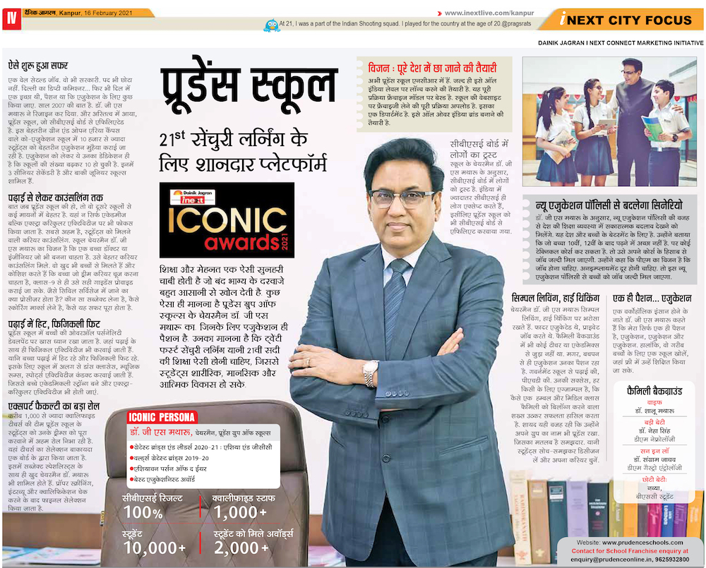 Media Coverage of Dr. G.S. Matharoo, Chairman, Prudence Group of Schools, by Dainik Jagran iNext...