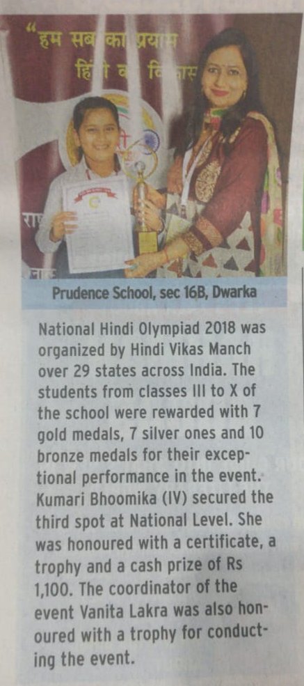 Students of Prudence School Dwarka 16B won 7 gold, 7 silver and 10 bronze medals at National Hindi O......